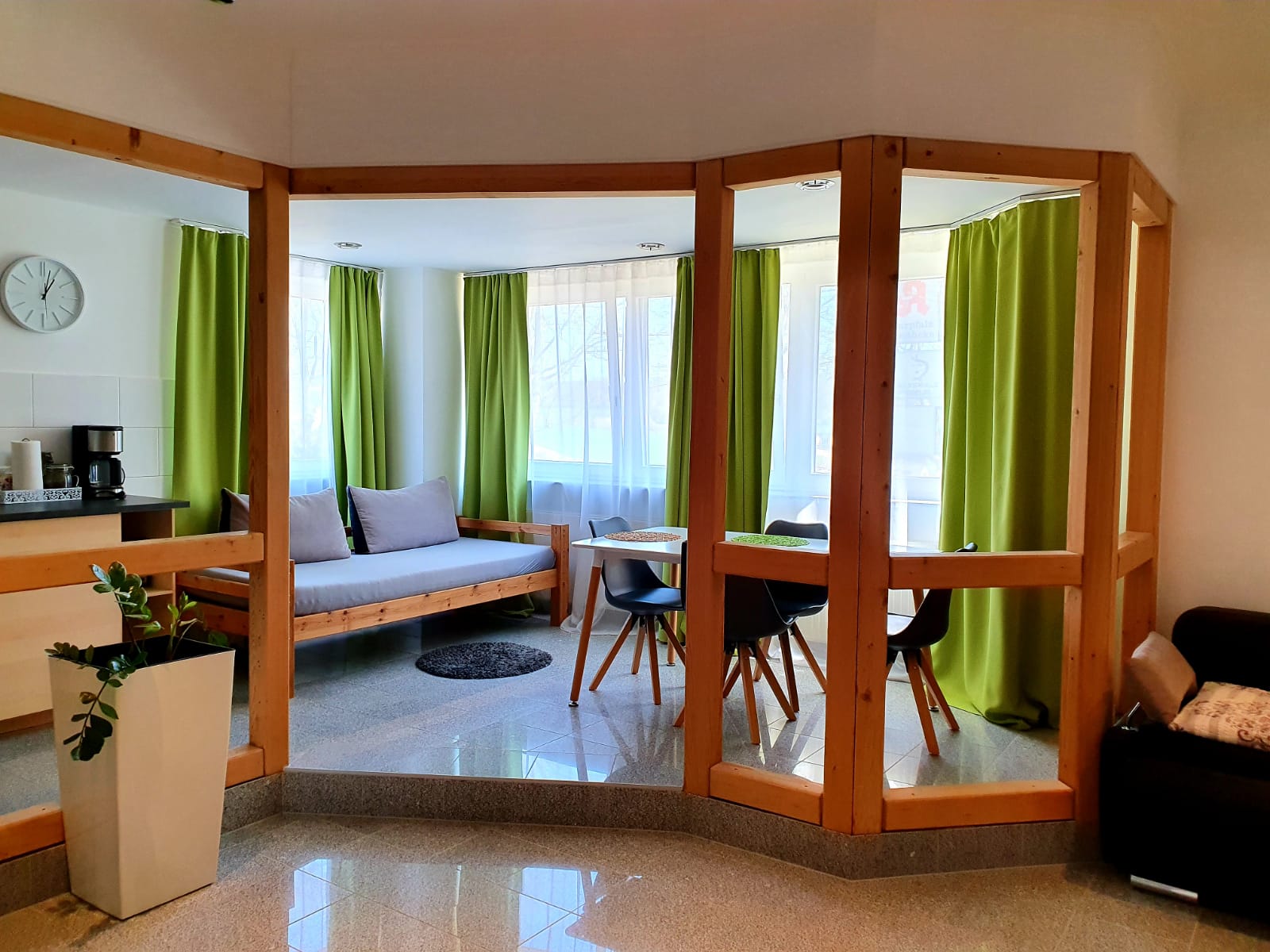 Da die zwei Appartements in unmittelbarer Nachbarschaft liegen, können Sie auch für kleinere Gruppen bis zu 8 Personen zusammen gebucht werden.