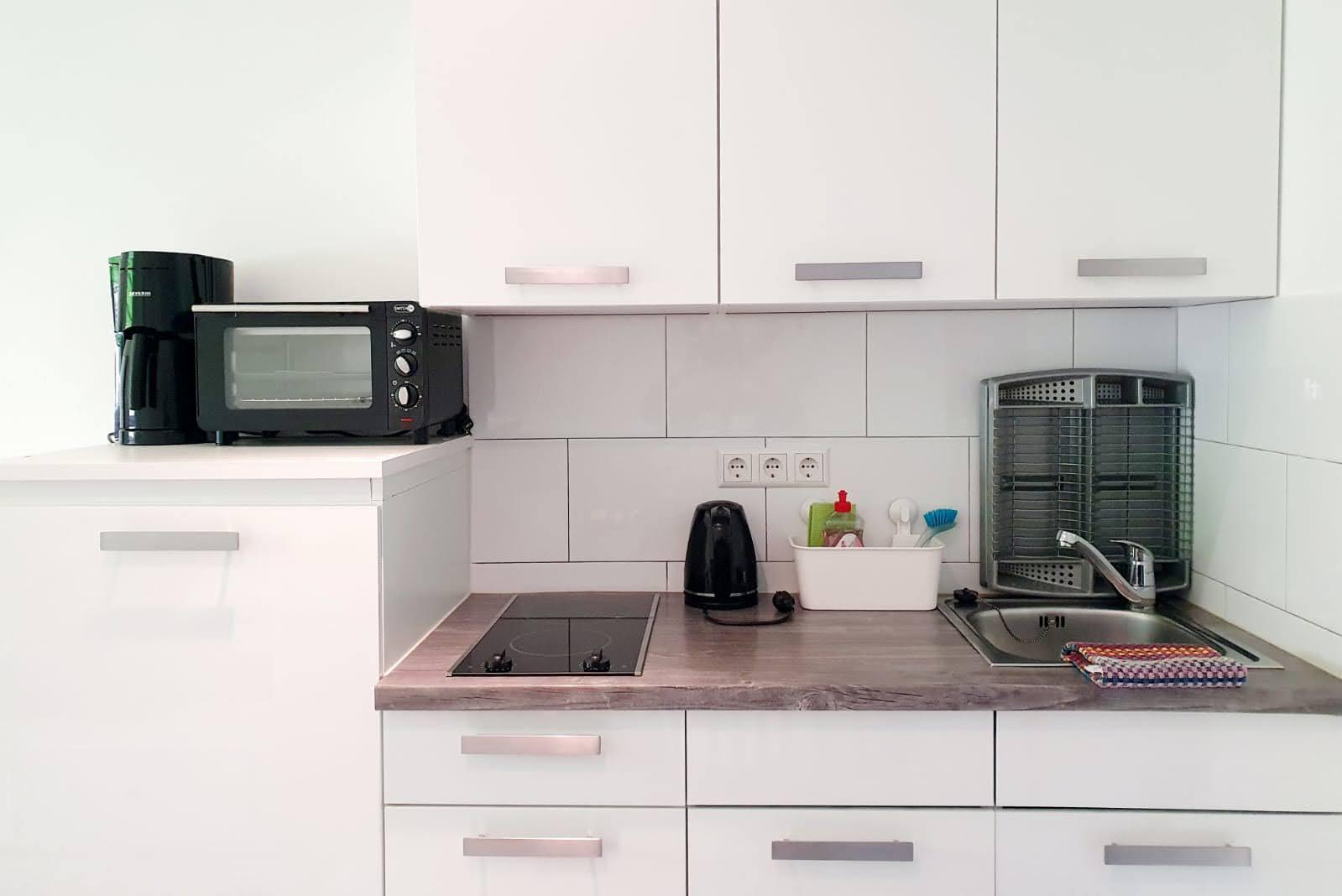 Unsere Unterkünfte verfügen über einen Sitz- und Essbereich sowie über eine Küche mit einem Toaster, einem Kühlschrank, einem Kochfeld, einer Kaffeemaschine und einem Wasserkocher. Das eigene Bad ist mit einer Dusche und kostenlosen Pflegeprodukten ausgestattet. Handtücher und Bettwäsche werden gestellt.